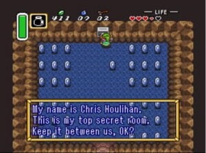 Nintendo Power, the official Nintendo magazine, used to have all sorts of interesting contests. One of the most popular contests ever was to win the appearance of your name in a Link to the Past. Chris Houlihan was the winner and his name will always remain very well hidden in a Link to the Past.