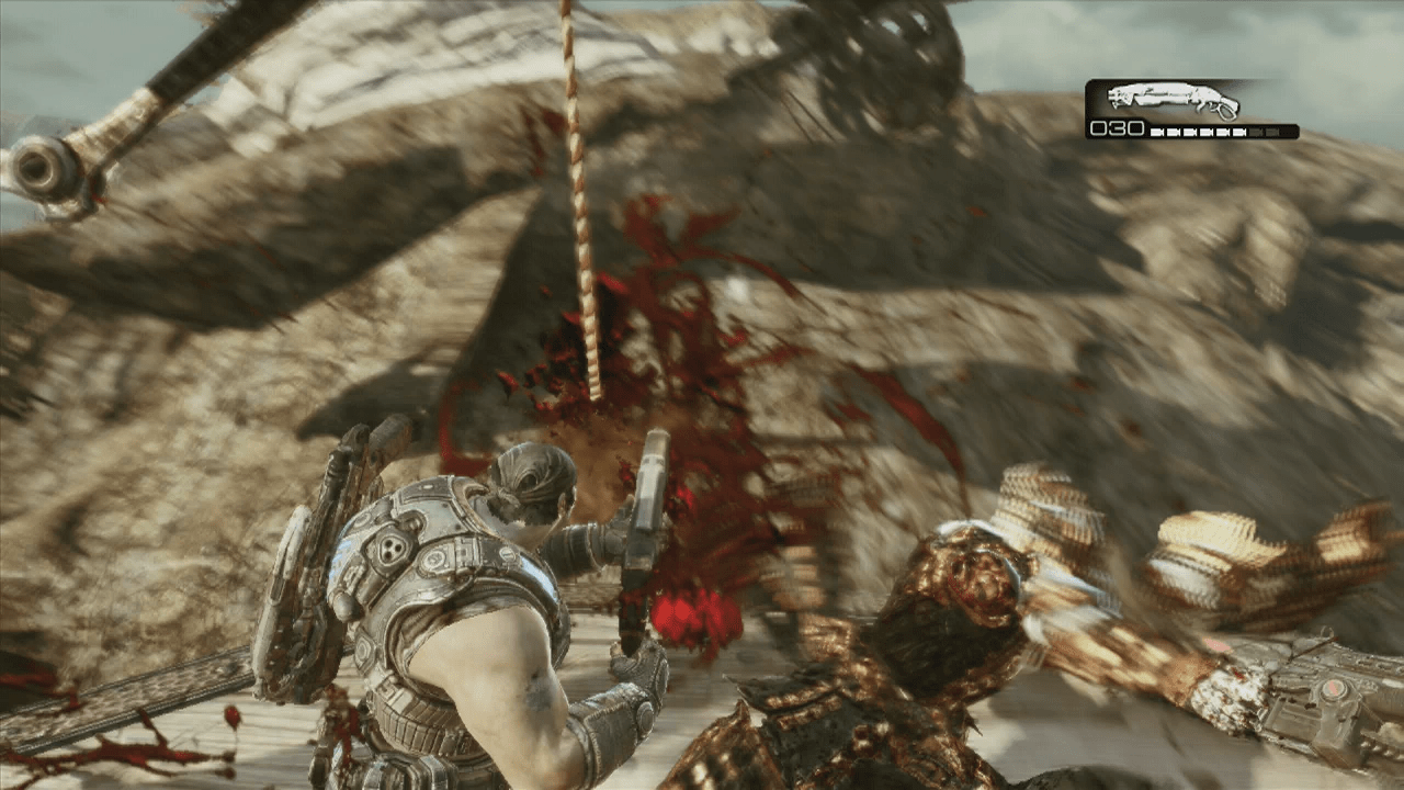 Now this one has taken quite some lives. One of the most reliable weapons a Cog can have when getting down and dirty. The Gnasher serves the use of a standard shotgun in campaign, but in multiplayer it takes no a whole different role. A multiplayer match of gears usually revolves around two people jumping, dodging and rolling right next to each other all while trying to get that perfect gibshot in what little time the player takes to aim. seriously, it’s just two people doing tac-rolls while blind-firing. It’s broad design and no iron sights is just a testament to the fact that this gun is not meant to aim with. I also like that this shotgun is the only shotgun on the list that is lever-action, meaning that to eject an empty shell instead of pumping you pull a lever under the trigger. It’s a mechanic that’s outdated but looks cool as hell.