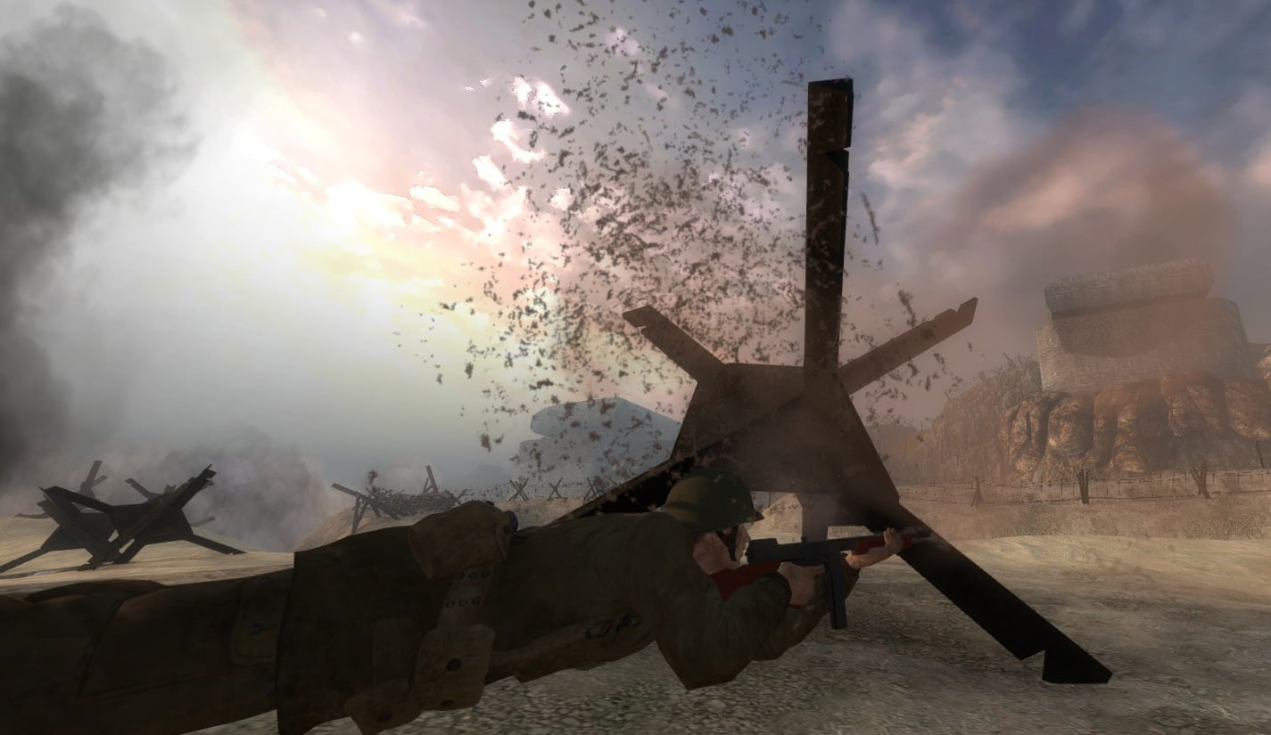 I start up the game and first chose single player. Immediately the battle of Normandy has my attention. I imagine the battle starts at the amphibious vehicles, following is a long run on the beaches surrounded by explosions and bullets passing by my head. Pittyfull enough it’s much less heroic than that.