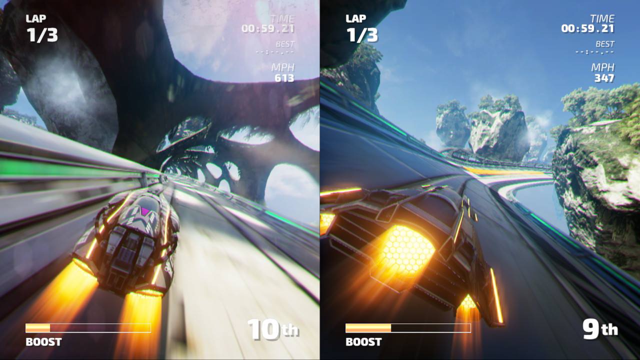 If you want to play locally you can play against another Switch system or of course share one of your joycons and play split screen (up to 4 players) amongst the other control schemes you can pick from. Be aware that your boost will be assigned to your analogue stick click instead of the shoulder buttons when playing with the shared joycons. Other than that I didn’t feel like I was missing any buttons playing this way. It truly shows the versatility of the Switch’s controls and how well it works even on the go!