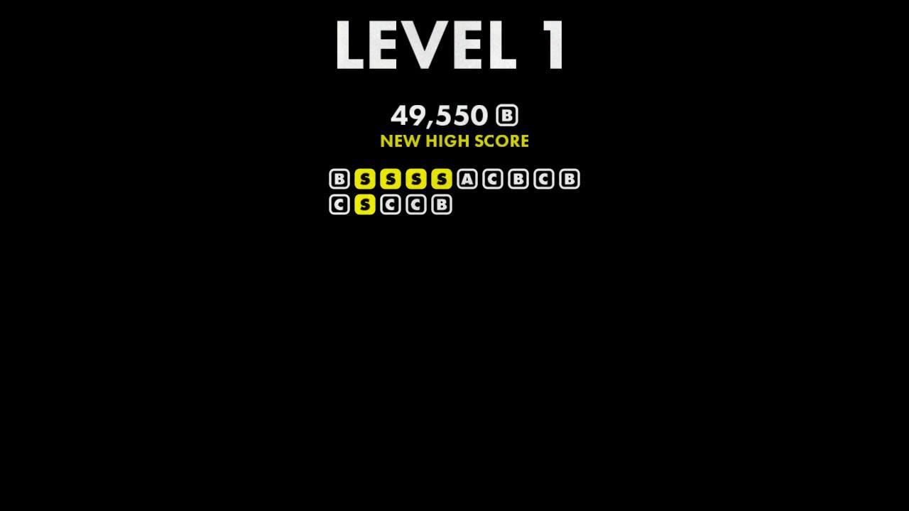 Finally getting that “level finished” screen before you, true love! I love how it shows how well you did in every aspect of the game, getting a few S-ratings myself, I felt quite proud!
