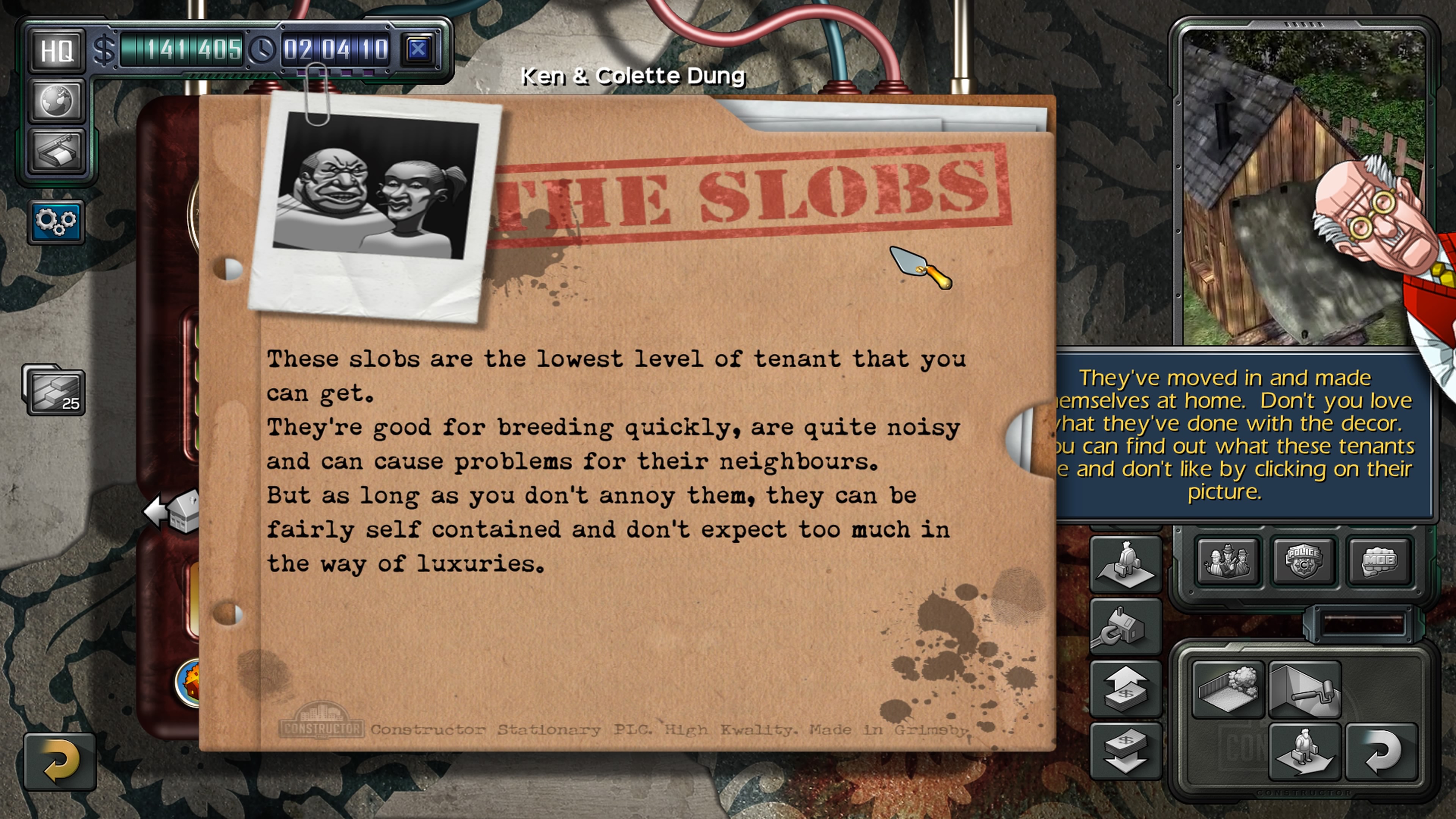 The game is made by System 3, a British video game developer that does not hold back the typical British humor. Every character in the game speaks with a cockney accent and will often put a smile on your face with their dark sense of humor. If you want to see if this type of humor is to your liking, look up the intro sequence of Constructor. Simply put, the humor Constructor still holds up after 20 years.