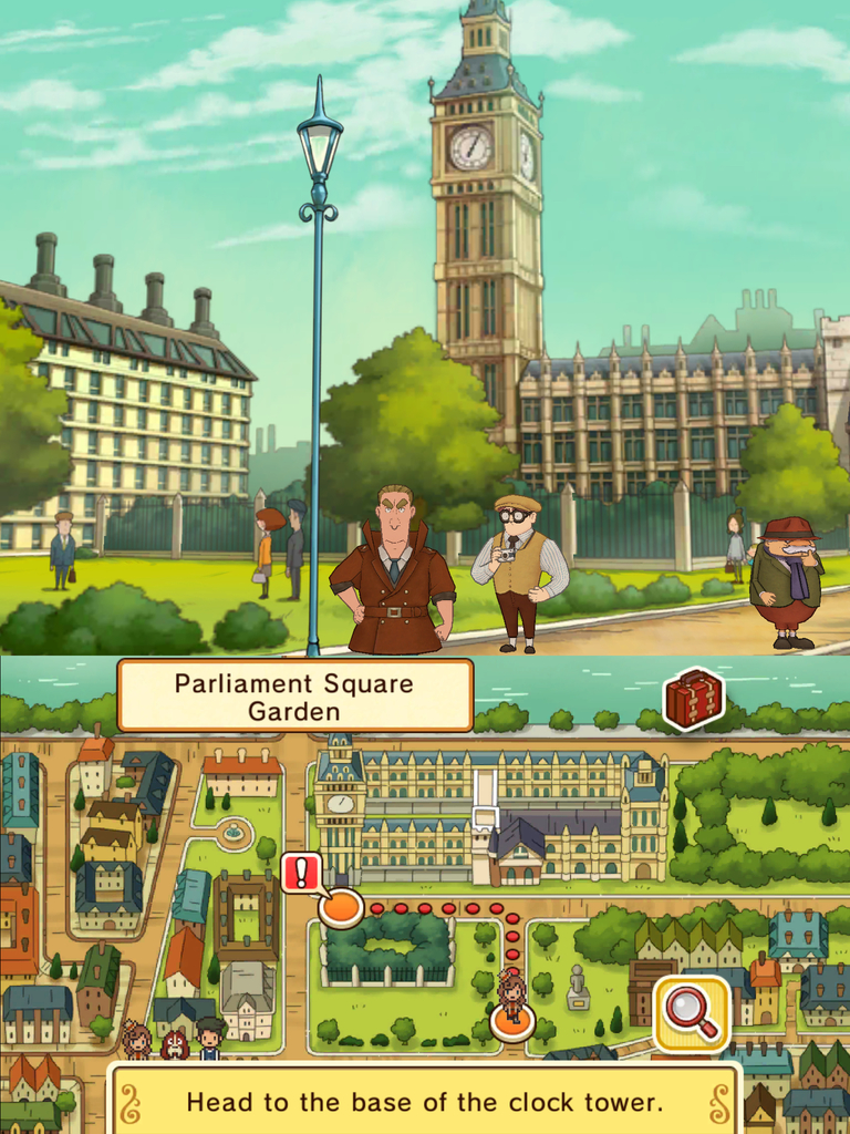 Charming, witty and clever are a few adjectives you can use to describe Layton’s Mystery Journey: Katrielle and the Millionaires’ Conspiracy. You play as Katrielle, Layton’s daughter, on a quest to find her dad. Her journey begins in London, where she opens her detective agency. Her first customer is a talking dog. Yep, you read it right, a talking dog. This one throws you the very first puzzle of the game; make a K out of 3 triangles. From then on, your progress further into the story, cracking your first case; the missing hand of the Big Ben. The game mechanics are all explained in the first case, effectively teaching you how to play along the way. The further you advance, the more complex puzzles you’ll stumble upon.