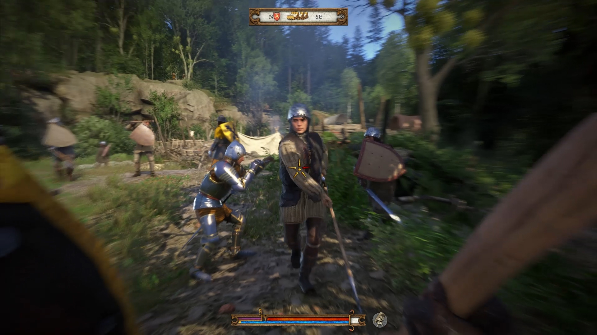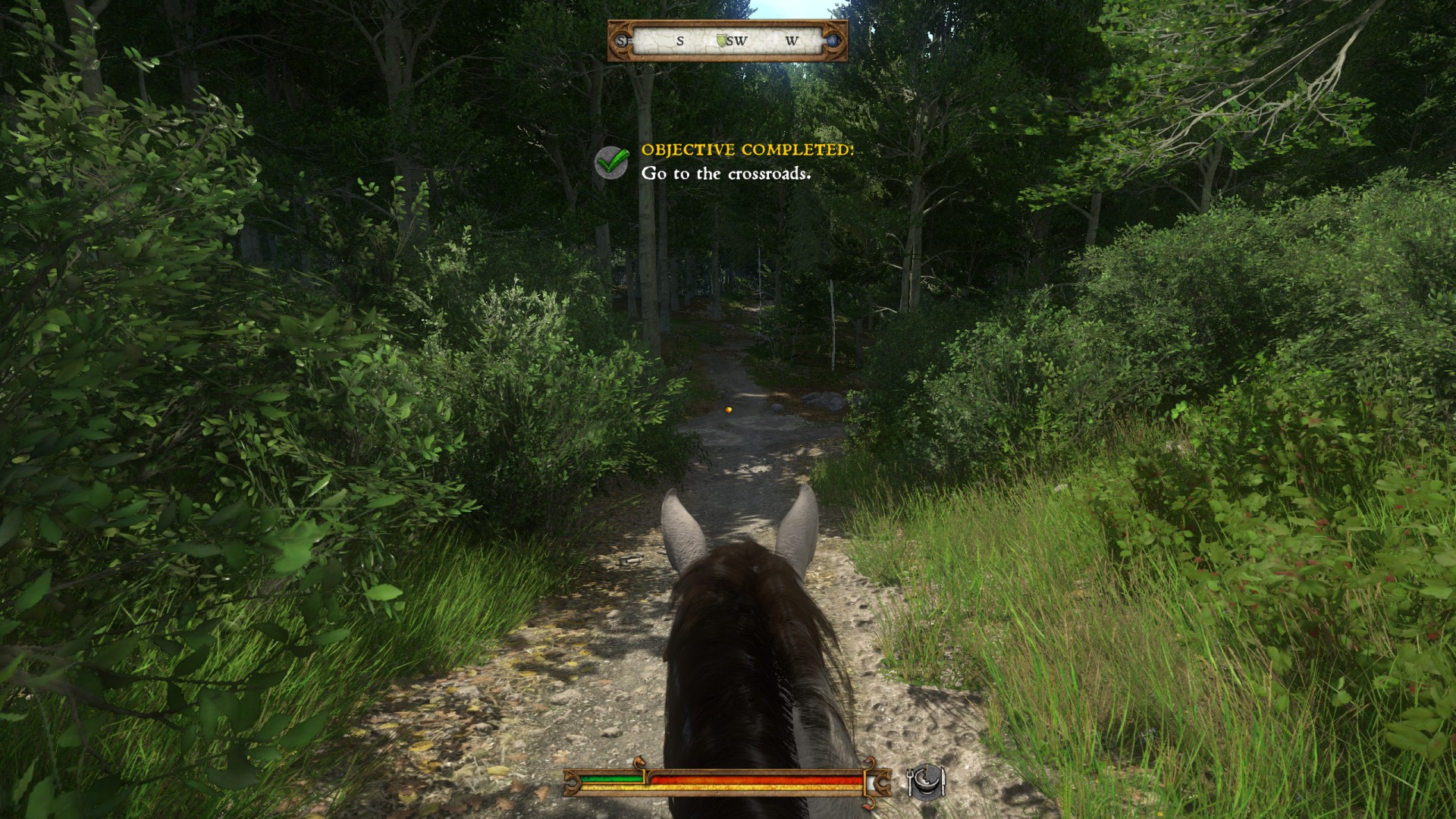 The visuals of this game are good, but not great. To start off with the positives, I love how the forests look like actual forests. A pet-peeve of mine is how open-world games with forests in them always look like simple plains of grass with a few trees that have huge gaps between them. Real forests are dense, filled with all different kinds of trees that block out most of the sun, which is how they are designed in Kindom Come: Deliverance. This is why navigating through forests in Kingdom Come is hard, but more realistic since whenever you come across something interesting (like a shack) you make sure to remember its location as a point of reference.