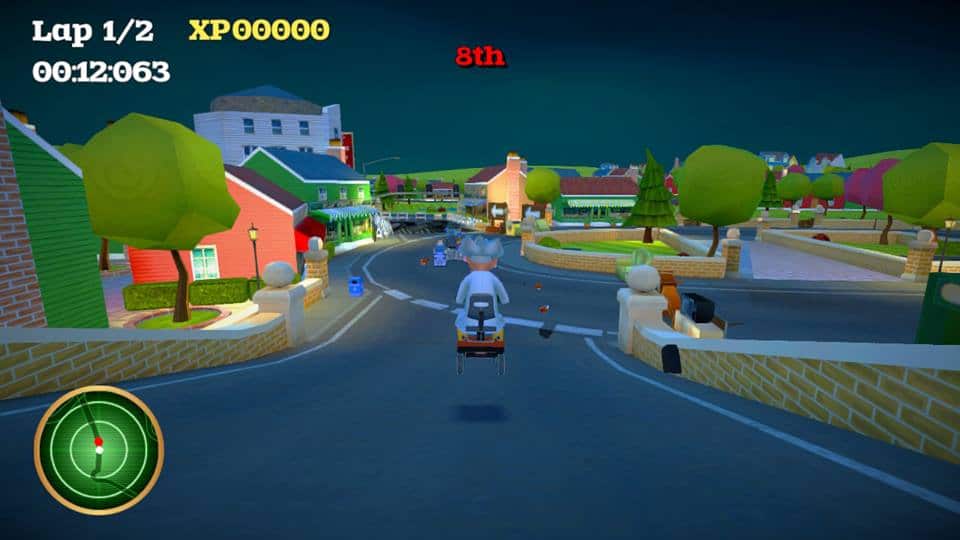 Because of the aforementioned reason and the fact that feels a bit too much like Mario Kart, it will not score high in my opinion. The game has its funny elements, however, once you’re playing they don’t really come back. The tracks are well built and look very good and this is a big redeeming factor. Another weird thing is that you get extra experience points for doing stuff wrong. If you hit obstacles you get XP points which is a bit weird but not something that takes away from this game.