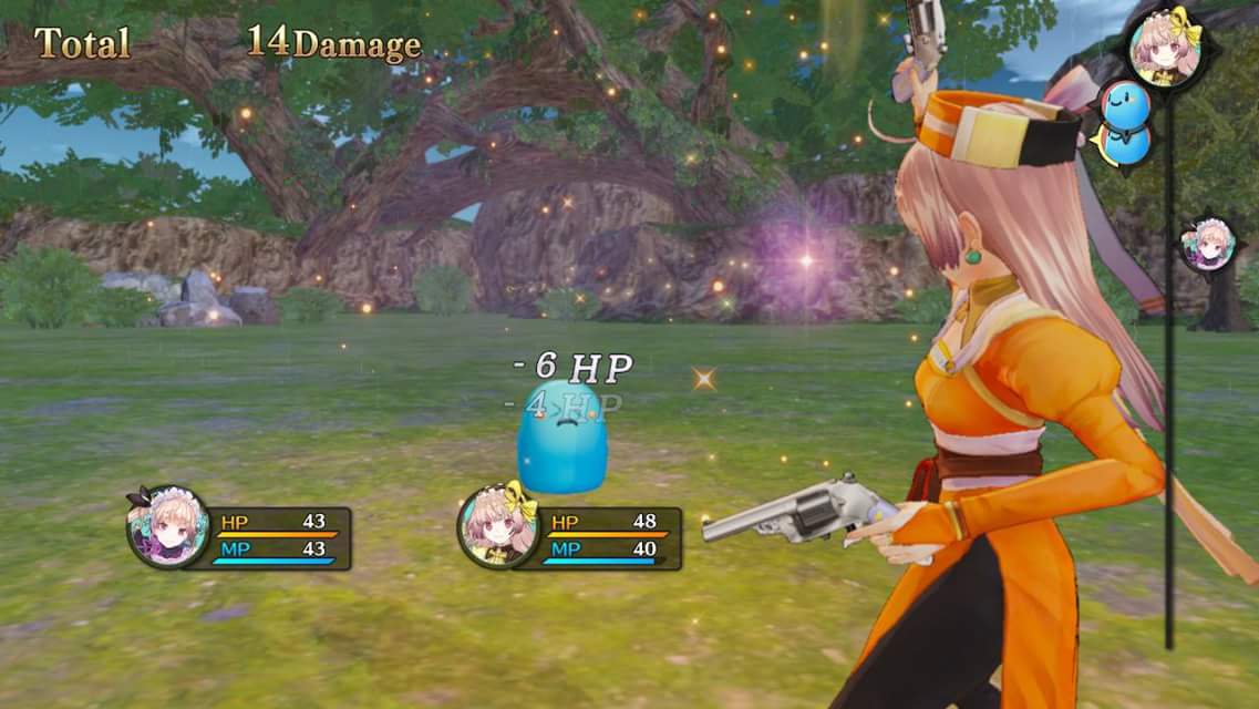 Lydie & Suelle each have their own strengths in battle, and you can eventually recruit up to four more people as you make your way through the story. To start off with, though, you will have Lydie acting as your healer and party buffer, and Suelle as your revolver-slinging combat specialist. You start off relatively weak, but it’s just hardy enough for you to survive the few enemy encounters that you will have while you fill your basket. Whenever you are collecting materials, you have a basket with a limit, and that limit is usually reached at about the same time as your party members are starting to run low on health and mp. Combat is simple, but satisfying. It is a pretty standard turn-based system, with an active timeline that determines who gets to act next. You will learn attacks or spells that can affect this timeline, and hitting your enemies with certain items can stun them or push them back further on the timeline, which allows you to attack more often than they do at times. This is only a little bit of strategy, but it does make the combat more enjoyable than just having attacks and defense. You may also use items in battle, most commonly those that you have crafted, but items can be acquired through shops and as quest rewards. Leveling up in battle leads to an automatic skill acquisition system, but I really do wish that they had made a skill tree system that was as varied as the alchemy crafting system. However, Atelier games, as mentioned above, focus on their crafting system, so it really isn’t a surprise that combat-related levels result in achieving specific moves at predetermined levels. Combat levels also don’t affect your alchemist level, which only increases when crafting new materials.
