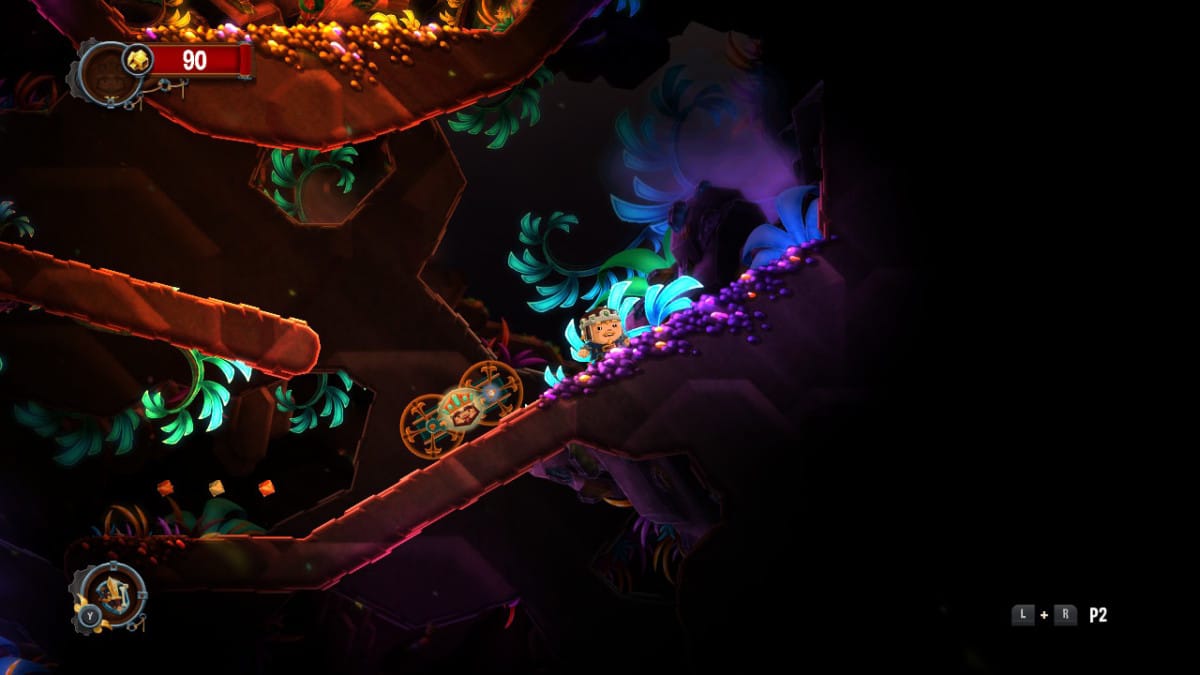 While the game can be played and finished solo as the heroic princess, it’s actually designed to play with two players. A friend can join in as the fiancé to help along the way. If planned right, you can really make it much easier to reach certain places in co-op than with solo play. Certain parts of the game even have a sign to mark that path as only reachable with two players. Mind you, those paths were really challenging. Choose your friend wisely because patience is virtue on those paths.