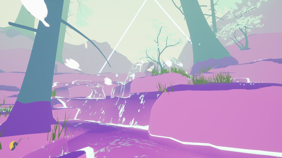 I could destroy trees, interact with animals looking like jellyfish (which flew up when poked), and gather berries/seeds. It was a nice touch and had a relaxing feeling to it. Every time I went through a portal, the colors became more vibrant and the music changed. The way the world shaped itself also differed once I entered a portal. A really nice touch, since the vegetation and animals evolved with me. Does this mean the game has no direction whatsoever? No, it’s indeed more than a walking simulator, since the game has actual achievements, which can be unlocked by completing certain tasks (not going to spoil). The game even features an underwater part – which is, in my opinion, more complex and interesting than everything ‘on land’. You can create your own sea/lake setting by touching certain stalactites or jump a few meters in the ‘air’ by touching an urchin (which weren’t purple, like in the iconic series of Freddie Fish, sadly).