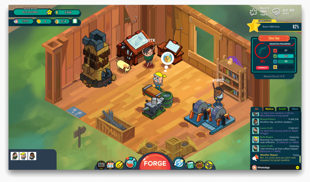 The game itself isn’t that hard, even if you have never played a game like this before. You use your potato smiths to forge weapons and sell them to questing heroes. By doing so, you can upgrade your smiths, your smithies and gain new areas to explore. These areas give access to powerful artifacts you can use to make new weapons – etc. etc. etc. You get the point. During the game, you will meet more than 70 potato heroes, forge more than 200 weapons, expand your business into 20 wacky areas, manage 30 zany potato smiths, discover 10 legendary pop culture heroes . . . and even adopt a potato dog, which you can name yourself!