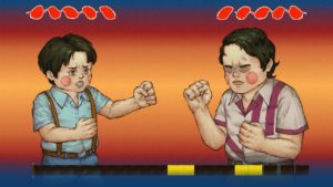 There is a second part to the rhythm game where you just need to press the button when the pointer hits the color. Be careful with suckerpunches and you are good to go. They can get really nasty and really mess you up. All the charm of the game? This can get dark when you are doing this to prevent a bottle from being shoved down your face…