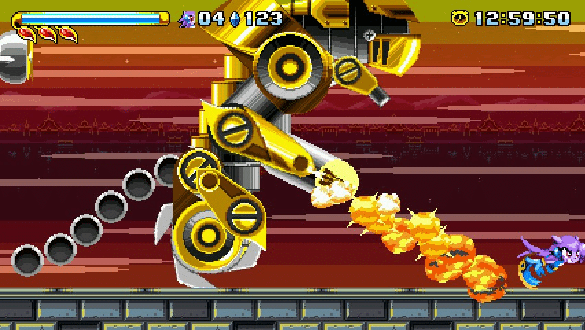 Along with the old-school style of the art and the gameplay, Freedom Planet also features plenty of old-school cheap difficulty, and some of the levels are long and drag a bit. However, even the pacing and difficulty aren’t really an issue, because Freedom Planet gives Lilac and friends unlimited continues and mid-level checkpoints to start from. Moreover, unlike an old Sonic game, which capped the player’s time in each level at 10 minutes, Freedom Planet imposes no time limit at all, letting you explore and find new ways to get through a level. Finally, the game tries hard to mix things up with new level mechanics in each part of each stage. Some level sections require the player to solve a puzzle to open a door further back in the level. Others feature escape sequences reminiscent of the boulder scene in Indiana Jones. It’s easy for these sorts of games to get dull after a while, but Freedom Planet succeeds for the most part in keeping gameplay fresh throughout.