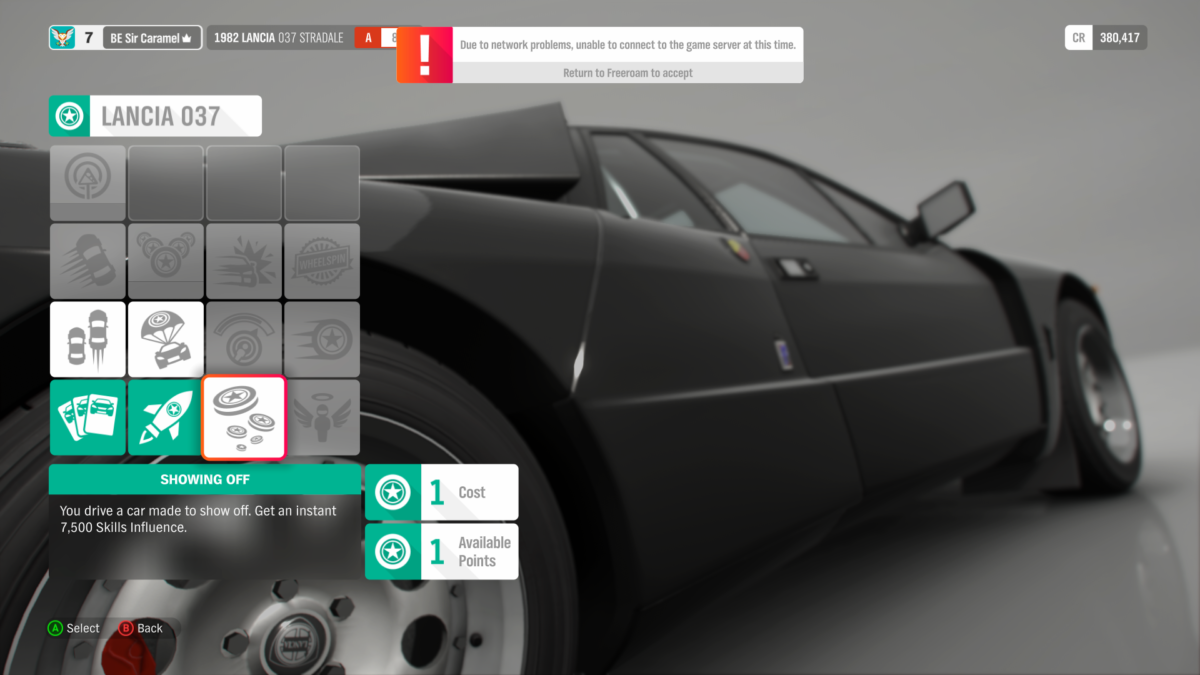 The so-called “RPG” mechanics also make a return in Horizon 4, where banking skill points can be used to level up skill trees and make your life a bit easier. Since not everyone was a fan of the way the skill tree system worked in Horizon 3, the developers have listened to fan feedback and tweaked it. Instead of a skill tree for the player, each vehicle has its own tree with unique skills that can be upgraded as you earn skill points through extended use. Since you’re likely to switch cars fairly often, leveling up individual vehicles might lessen a feeling of overall progression, but after a while, you’ll learn to focus on leveling your favorite vehicles and build a special bond with the cars you’ve put a lot of time into playing with. In addition to buying skills, you’ll also level up in a variety of different categories, which earn you clothes for your in-game avatar, vehicles, credits, horns, emotes, and wheelspins. Wheelspins are every bit as addictive as they’ve been in the past and with more ways to level up than ever before, the game gives you every incentive to keep playing and earning awesome loot. Assigning a separate skill tree for each car is also a great way to motivate you to keep driving in the same car. In order to unlock every skill, you have to spend quite some time with the car and pull off different kinds of moves (like a quick J-turn or near misses with other cars). This results in you knowing how every car drives and behaves and thus eventually makes it easier for you to pick the right car in a race.