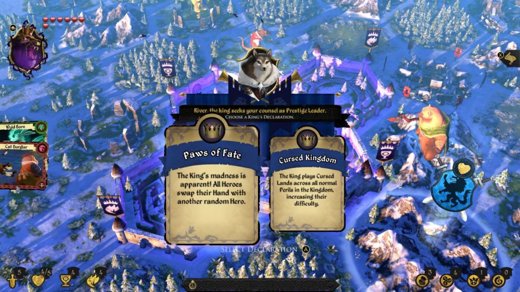 Each game is about the same length, since the game ends whenever the king is killed (or healed). If you let the flow of the game play out, the game ends when the king dies of the effects of the Rot. The one with the most prestige, gained by completing quests or killing other players, will be crowned king. But there are more ways to win, otherwise you can just go around questing and killing of people, doesn’t sound fun, does it. There are three other ways to win at Armello, which are more multiplayer oriented. They demand alliance-making and stabbing people in the back.