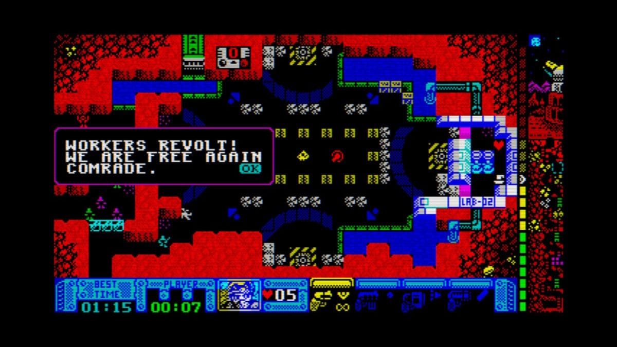 Next, to the normal storyline there is also a bunch of mini-games, which includes a tuned down version of Aqua Kitty. Most of the mini-games are locked behind collecting some stuff in the levels you’ll visit, but one is simply waiting for the game to fully load on the ZX-Style. Anyone who grew up with dial-up internet will know the hardships of this loading screen.