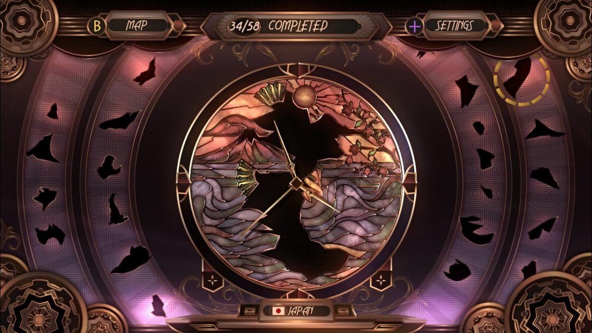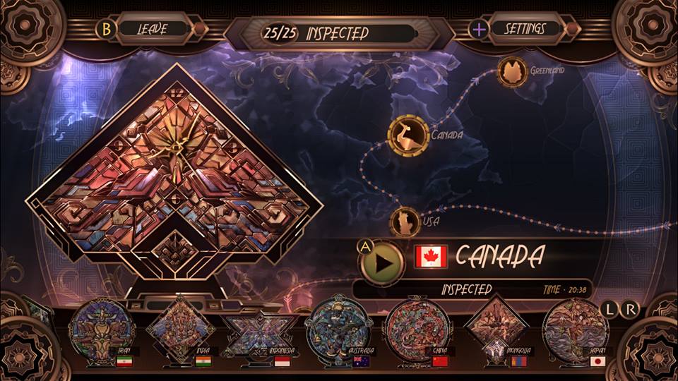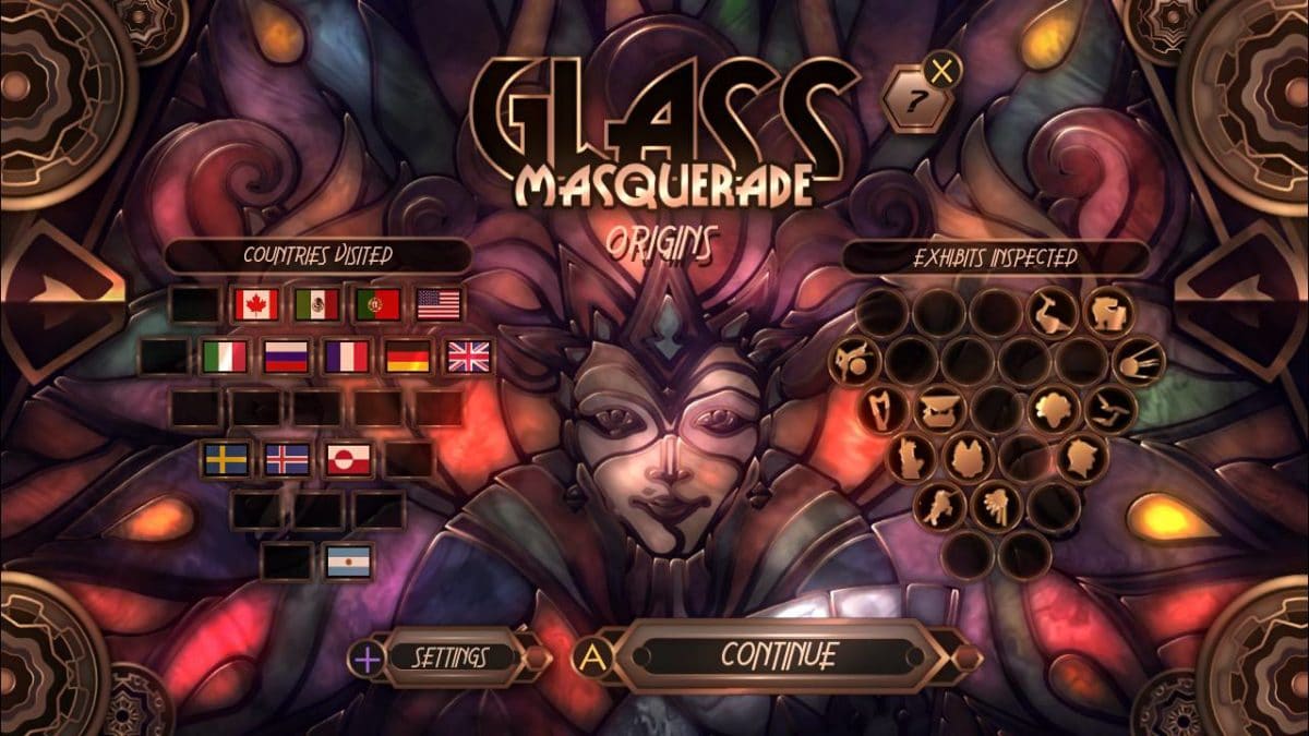 The art style of the game is based on Art Deco. This is an art style which first appeared in France just before World War I. It was influenced by designs of buildings, furniture, jewelry, fashion etc. to even some household objects. It took its name from the Exposition internatinonaledes art décoratifs et industriels moderns (compare it with the World Exhibition but for art). Glass Masquerade revolves around this concept, although it does not give any backstory on the exposition itself. It does feature however 25 of the competing countries, all with their own theme. Knowing what the different attending countries are known for really helps in solving the puzzles since you’ll have a general idea what to look for.