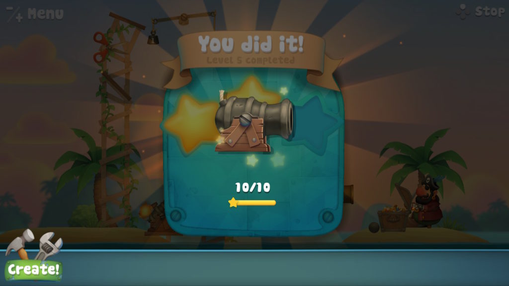 When collecting enough stars, the game awards you with presents. These presents are certain objects you unlock in the “create” mode of the game. In this mode you can make your own levels to challenge others. This mode can obviously be used just to have fun while making an epic chain reaction. On the other hand, this could potentially be a really powerful tool for parents and teachers to challenge their kids/students.