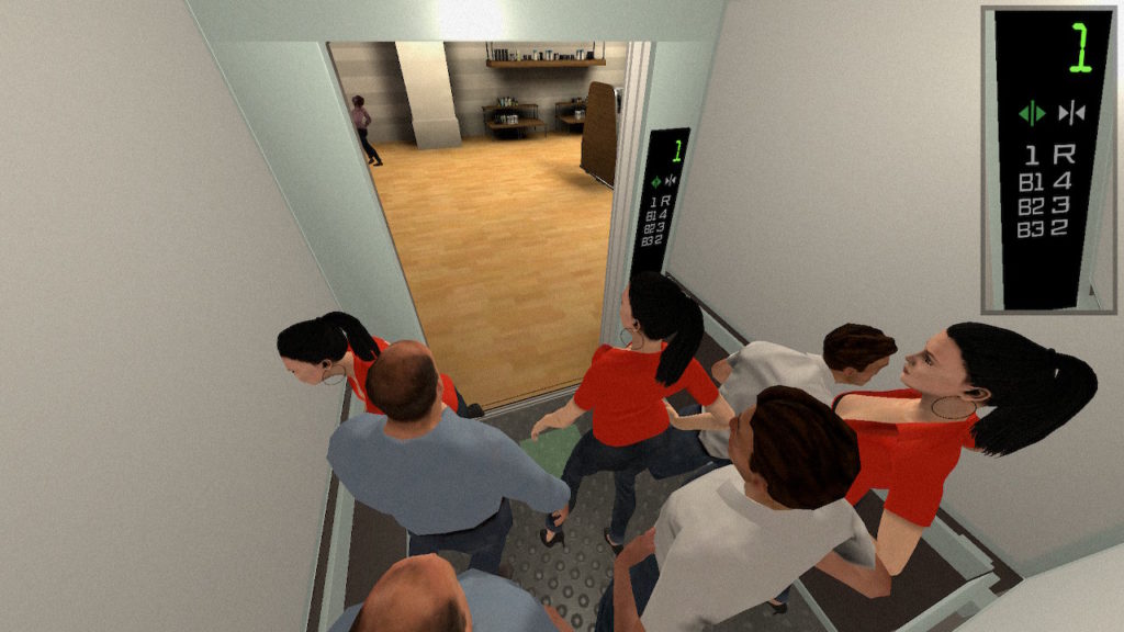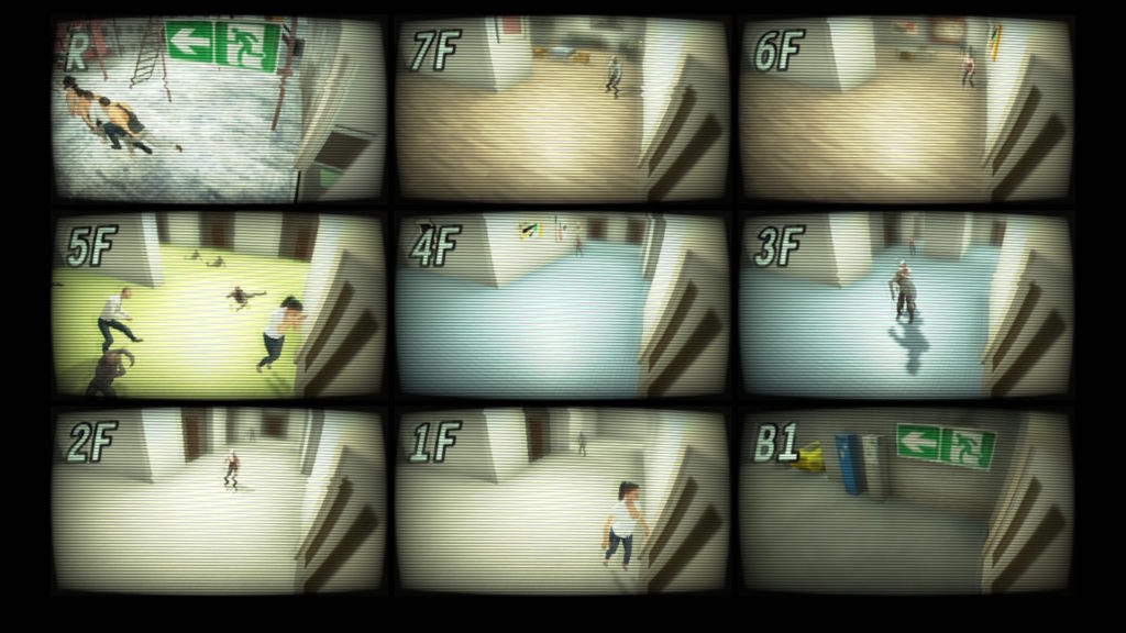 The game starts with a simple message to save as many people as possible. You get to see security camera footage from all floors of a building. Some floors already have people waiting for the elevator to come up, while others show roaming zombies. Once you gain control you seem to be in charge of the elevator. Pressing up or down changes the floor and the buttons control the opening and closing of the door. You can check the cameras at any point to see on which floor people are in need of saving.