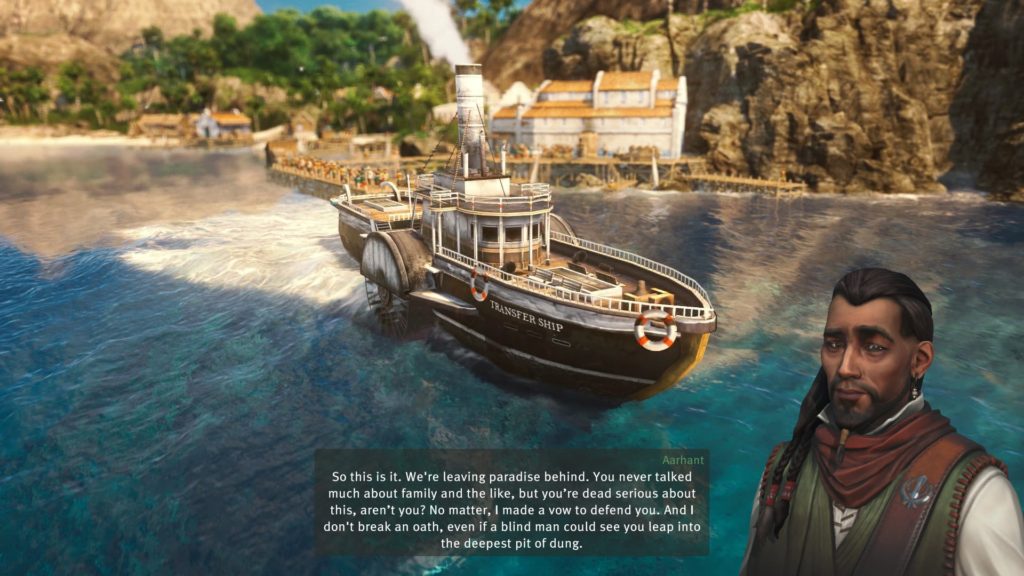 You and your soulmate Aarhantare out in the tropics, living it easy, far from any responsibility. That is until a tear-stained letter from your sister Hannah changes your life… She writes that your father, owner of respected shipping company Goode & Sons, has been imprisoned on suspicion of treason, pending trial. She is desperate for you to return, so you catch the next boat home. And here the story starts to grow into an Anno worth story. On return to the Old World, you find your father is dead. People are saying he was unable to bear the guilt… Your cruel Uncle Edvard meanwhile, has wasted no time in seizing control of Goode & Sons, and cannot conceal his disgust that you and Hannah are busy setting up a rival company. In spite of your Uncle’s constant interference, you manage to obtain a shipping license from the Queen’s advisor, Sir Archibald’s Blake, to operate a shipyard from the modest island of Ditchwater.