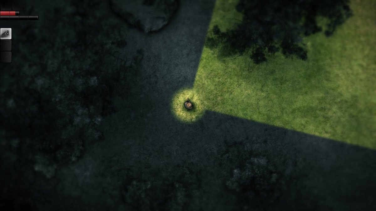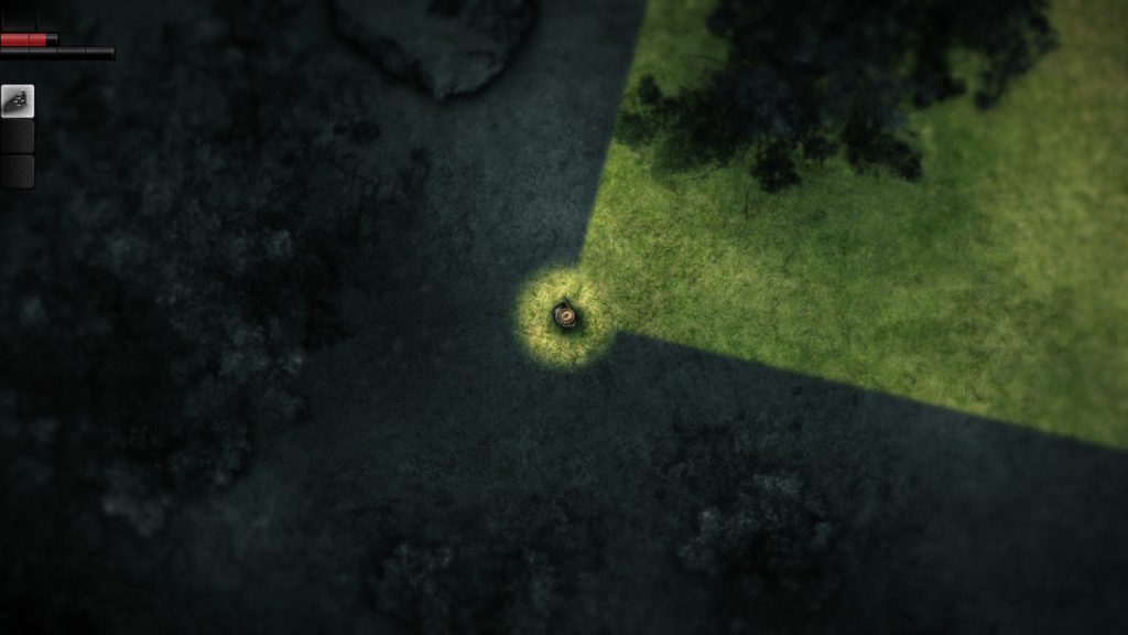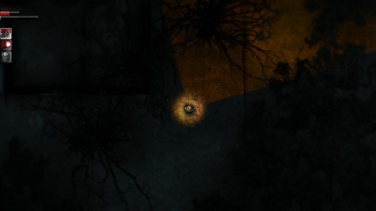 As you might’ve noticed from the screenshots, Darkwood goes for a top-down 2D perspective. How could 2D pixels ever invoke horror, you might ask. Well the thing Darkwood does really well is not going for the obvious gore and jump scares. Darkwood goes for a sense of dread and isolation by means of two things. Firstly your visibility is restricted to the part you shine your light at. Even during the daytime, you need your flashlight in the overgrown wood. Enemies are only seen when you shine light on them. Getting chased by an enemy can be pretty unnerving because inevitably you’ll lose sight of it during running.