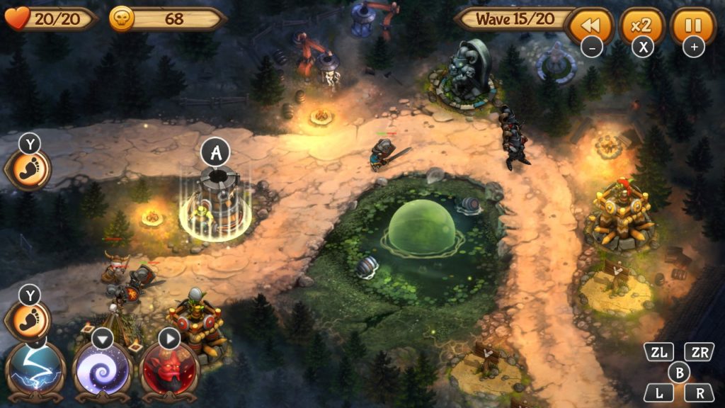 Evil Defenders is a fun, frenetic defense game in which you build and upgrade your towers, сast spells to repel enemy forces. You can even use special landmarks, like waterfalls or a poisonous cloud to defend the Lands of Evil from invaders! In its core, Evil Defenders is as basic as it can get. You are given a total of five basic towers, which you can upgrade and then further enhance into a specialized tower. My skeletons turned into Dark Knights (heavy armored) or Snipers, while my Archery tower became a grenade lobber or sniper tower. Each setup has its pro’s and con’s, so be sure to test out all the options if you get stuck on a map.