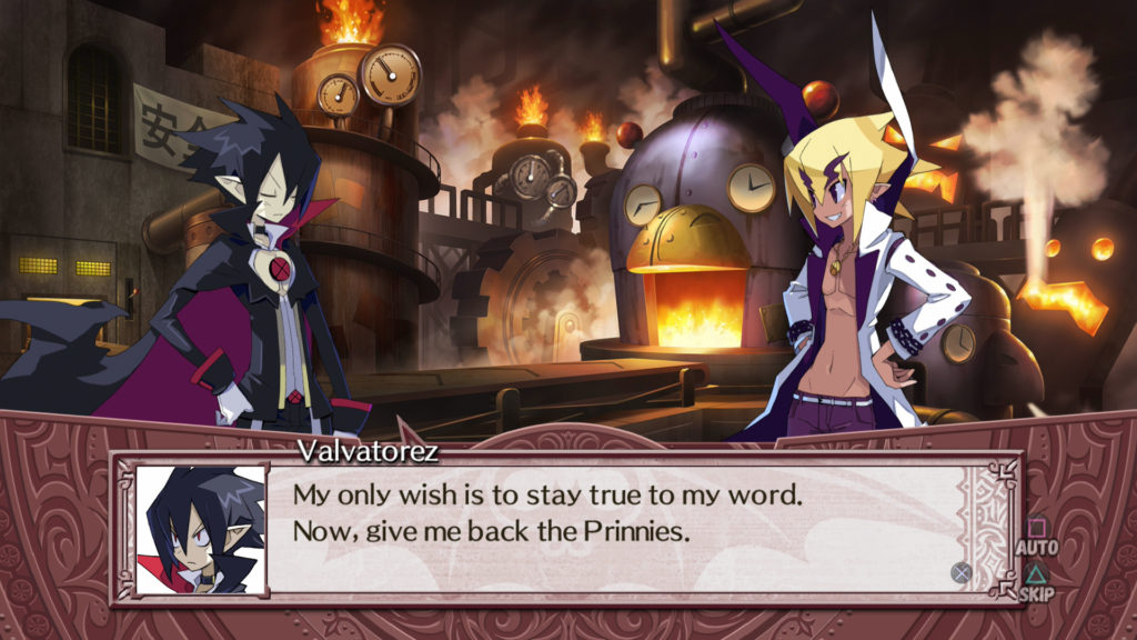 Hades–a prison located in the depths of the Netherworld. Valvatorez, a Vampire, is an instructor who trains newly minted Prinnies. One day, he encounters a dark energy that sucks the Prinnies away. With that, Valvatorez is unable to keep the promise he had made to the Prinnies who endured his rigorous training.