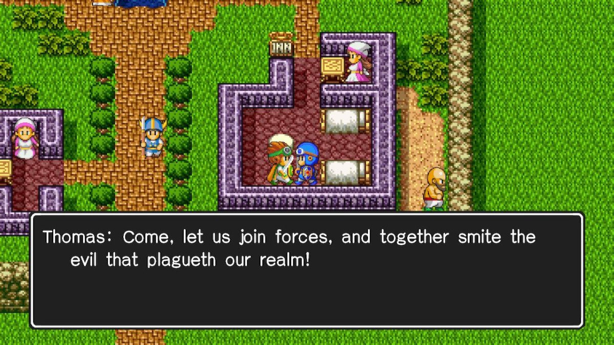 Storywise, it is a classic good versus evil story where you get your band together to fight off the ever so present evil forces. On a more comical sidenote, it has to be so hard living in these phantasy worlds as there is always evil a-brewing. Dragon Quest 2 is no different and unlike the first entry, it does a lot more to provide guidance in going from one place to the next. Prior to getting Thomas to join my efforts against evil, I was trying to track him down and it was clear how and where to go. Talking to people brings information.