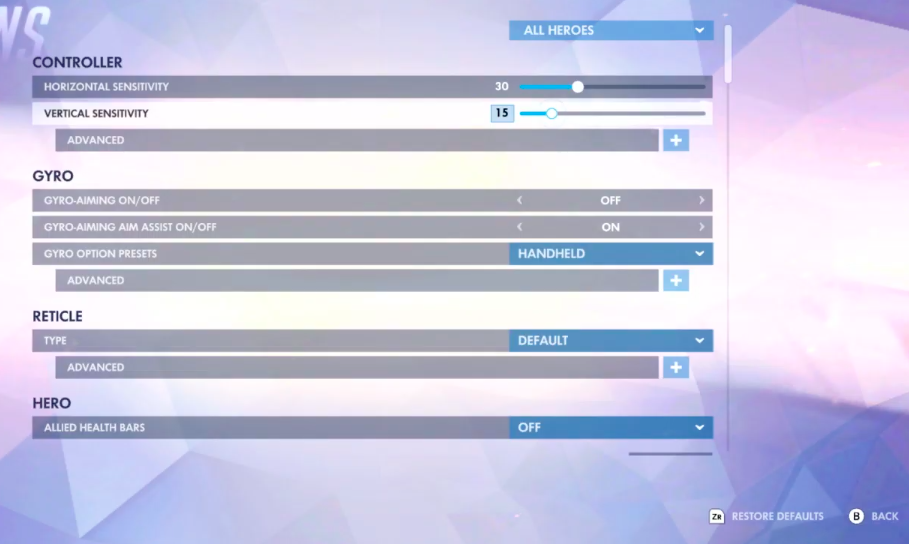 The controls and the customizable settings are BRILLIANT! Aside from the heavily marketed aiming gyro controls you should note that every single character can be tuned to your liking by adding or removing the gyro controls to specific actions. You can choose to use the gyro controls only while aiming down the sights when your sniping with Widowmaker. Or use the controls to control WreckingBall in ball form. Or again only when activating your ultimate attack. Every character has a few options you can tune to your liking to create the ultimate “gyro enabled” hero!