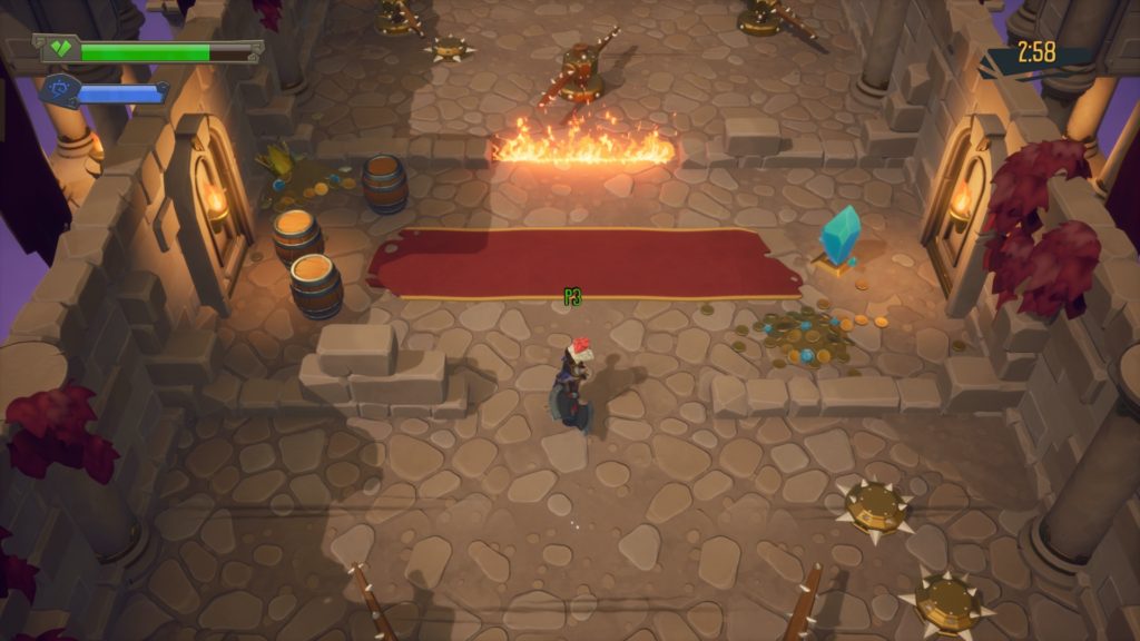 At first, I was very excited to see this game become reality as it tries something different within the competitive side of things, however in the end, I realized this game could have been much more than this. There isn’t a story mode and the only things that can be unlocked are 4 different characters. Even though the characters have been well designed, they don’t offer elements that make the characters different from each other. Each character plays exactly the same, the choosing of your champion is probably influenced by the character’s aesthetics. What you pick up during your dungeon crawling, forms your character. It’s a simple idea that works but a few more gameplay elements would have been welcomed.
