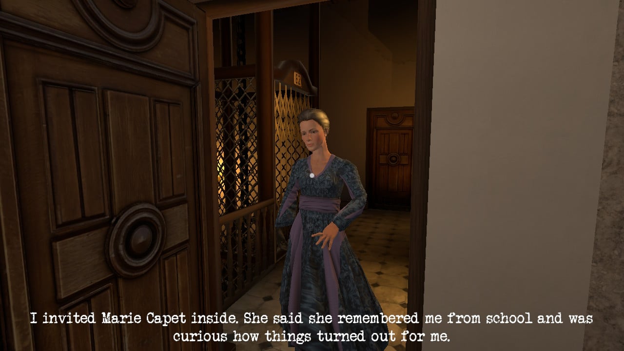 Bohemian Killing is an adventure game of the walking simulator type. You are more or less forced to walk a certain path at set times. Roaming free is not really an option if you want to get out of jail free so to speak. During the walking around and being at the right place at the right time you can’t do much else. Sure there are items to interact with but nothing more than just pointing out their existence to the judge. Don’t expect to be doing any classic adventure puzzling. In fact, don’t expect to be doing much else either. Bohemian Killing is much more about the narrative than anything else. To me, that’s just fine, the story in Bohemian Killing is enough to keep me interested in getting through the game.