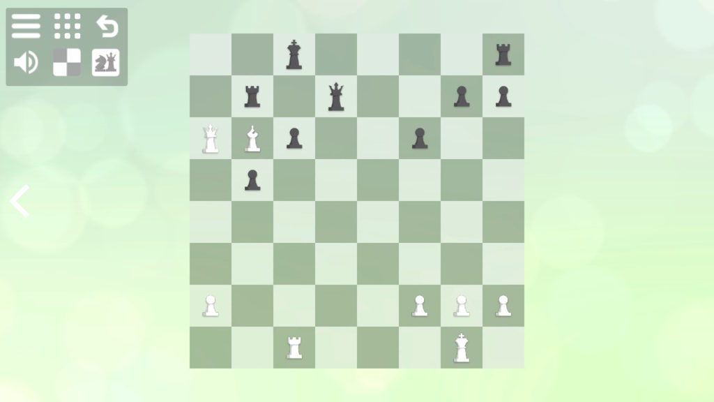 The first thing you should know about the Zen Chess Collection is that you won’t actually play a (full) game of chess. The four games only offer a challenging puzzle based on the game of chess. As you might already have guessed by the titles of the games, you get a certain amount of moves to put your opponent in checkmate. The first game, Zen Chess: mate in one, offers 300 puzzles in which you only need to move one of your pieces to best your opponent with a checkmate. Since I’m used to chess from an early age, I had not much of a challenge with the first game. Although the challenges got harder over time, I was more interested in the harder games.