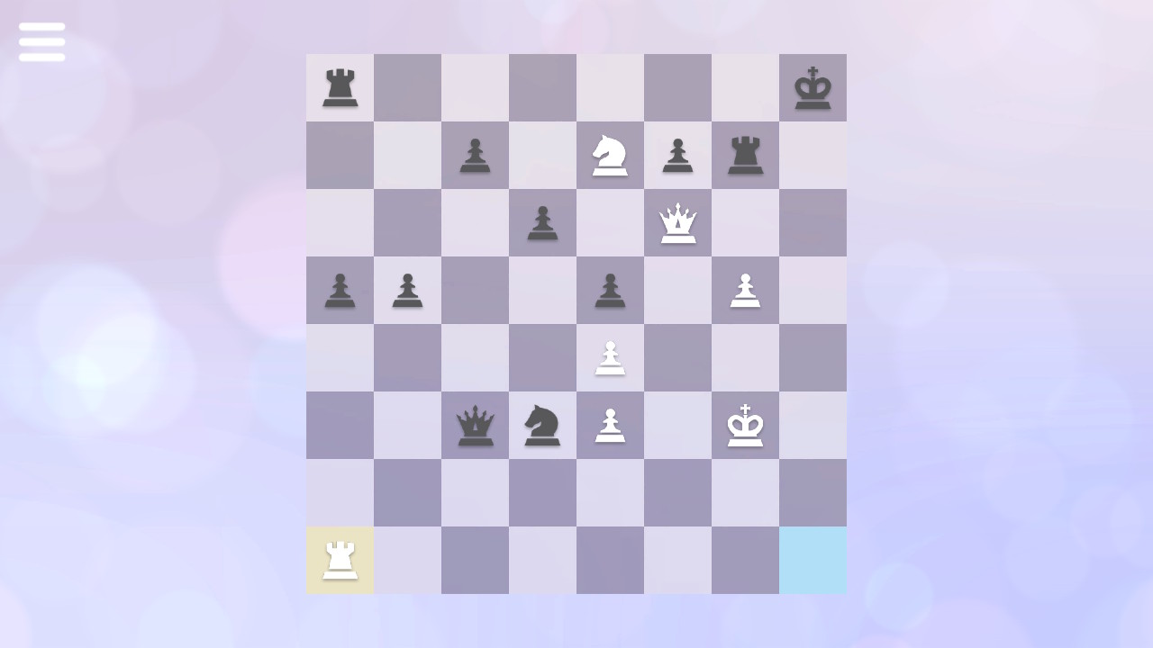 The “Zen” part in Zen Chess comes from the minimalistic way the game is presented in. The visuals are all intentionally kept smooth and simple not to deteriorate from the actual gameplay. You can change the look of the game with some color schemes to choose from but that’s about it. The music helps to get to the Zen state. Soothing loungy music accompanying minimalistic visions, make this game all about your thought process during the challenges. I actually caught myself playing this game for a long time without even noticing the time passing by. A small caveat I had was the fact that the music repeats itself a bit too fast. So a bigger soundtrack might’ve helped. Taking into consideration the low cost of this collection, I can’t be too picky though.