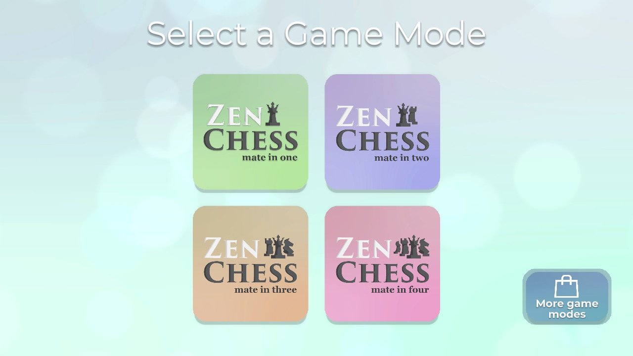 Zen Chess Collection bundles four previously released chess-based games by Minimol Games. The collection consists of Zen Chess: mate in one, Zen Chess: mate in two, Zen Chess: mate in three and Zen Chess: mate in four.
