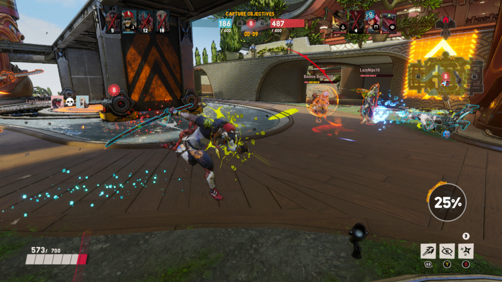 Now the biggest downside I experienced during Bleeding Edge was the fact that your team is everything. You can’t beat the opponents if you’re not working as a team. Going full Rambo on your opponents is a sure way to get butchered. If you happen to be in a team full of lone wolves… it gets quite frustrating. Another thing that breaks the experience is a team with no balance. If your team doesn’t have a healer or a tank you can forget getting anywhere. I had my fair share of these types of experiences which made me question the longevity of Bleeding Edge.