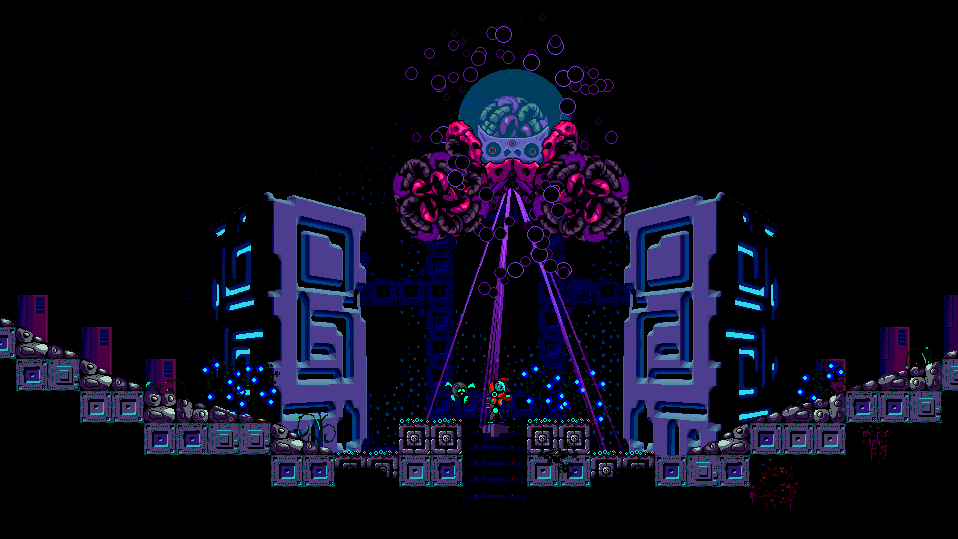 The art style used took me back at the NES and SNES days which was great. The problem I had was that it could’ve used a lot more variety. I know it is supposed to represent a sunken fortress. Those tend to look dark and gloomy… But I felt some more color here and there could’ve helped a lot with my visual appreciation of the game. I found myself mistake enemies for scenery more than once which didn’t help to lower my frustration level. Boss battles, on the other hand, looked so much more interesting and vibrant it made me wonder why not more was done with the design in other parts of the game.