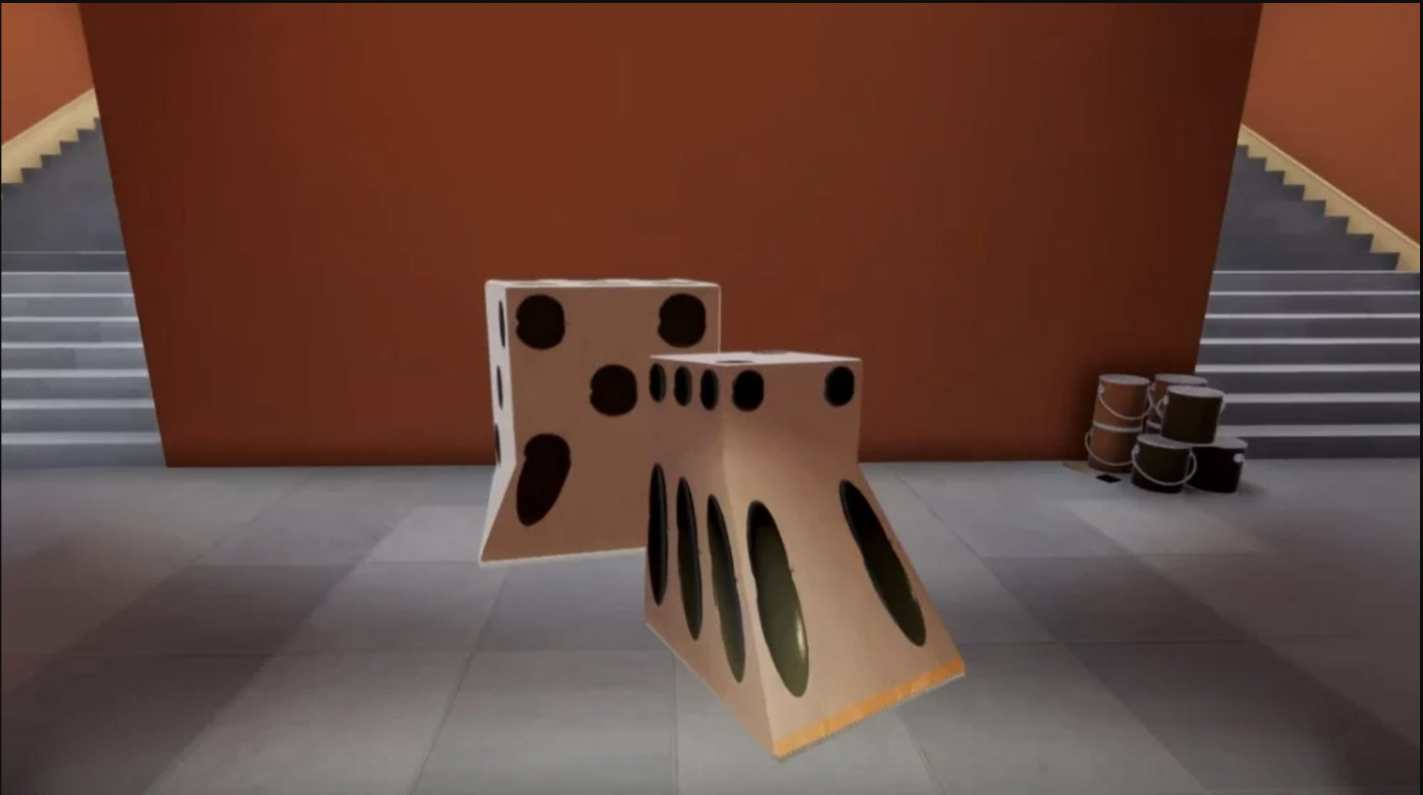 You find yourself in an engineered dreamscape, created by the company SomnaSculpt. It’s a friendly-looking and well-lit place, although it might be a bit on the sterile side. You’re tasked with the mission of solving puzzles that mostly have to do with perspective and reality. There are a couple of different mechanics, but the most common one is the use of forced perspective to manipulate the size of objects. If, for instance, you’re holding an average-sized chess pawn in your hand, you could place it in a long hallway. It will appear to stay the same size but as soon as you drop it, it will in fact become a massive pawn at the end of that hallway. It’s a really fun mechanic that makes you think out of the box. You’ll be able to run up massive bouncy houses, escape by using a piece of cheese as a ramp, all that good and whacky stuff. Maybe you’ll even get forced up or down in size yourself… Who knows? Along the way, you’ll also be receiving some messages from Dr. Glenn Pierce, where he’ll share with you some absurd and useless information as to how you should advance. Thanks for nothing, Glenn.<