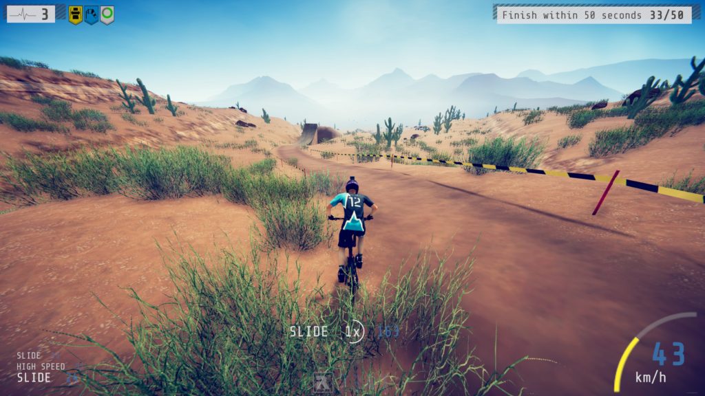 Besides some minor (non-game-breaking) framerate issues, Descenders runs smoothly. The areas all have a distinctive feel to them and all offer their own challenges. Getting closer to the peak with each go at the game kept me going. The repetitive DnB light music got old really fast but besides that, I had a nice time trying not to break my virtual neck while playing Descenders.