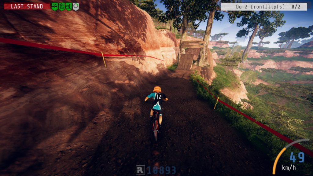 It looks to me Ragesquid did their best to make Descenders a fun game for all sorts of thrill-seekers. In each area, you need to reach the boss jump which is presented by a skull icon on the map. How you get there is up to you. After the first race, you get multiple branching paths to choose from. Each race has an indication of steepness, curves, and stunt objects so you can always choose the type of tracks more suitable for your own style. I liked to perform double backflips and 360 tweaked can-cans more than avoiding tree stumps at breakneck speed. The game gives you the option to take a few detours but ultimately pushes you to get to the last track before the suns sets.