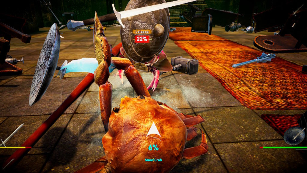 There’s a lot of fun with the pincers in the beginning but it gets boring quickly… Not to worry, you can equip your pincers with upgrades in the shop using in-game money you win from your underground crab fights! From knives to NASA rocket thrusters and even a joust to keep enemies at distance. And this is where the game gets more tactical. Every creature and weapon will impact your stats on the battlefield ranging from stamina, speed to strength, and more. You can level up stats and choose your own play style. Some enemies require a certain strategy and even when playing online you’ll be amazed by how good some players already are!