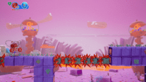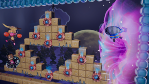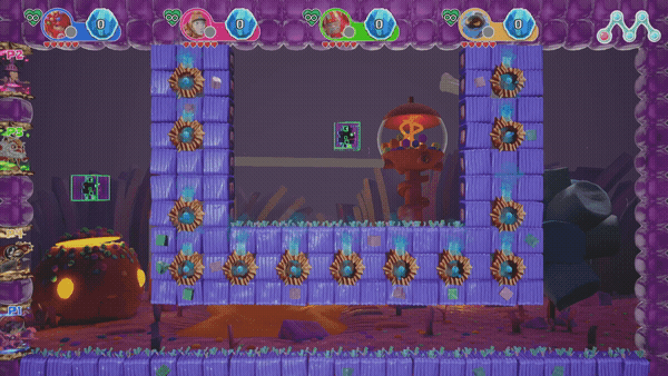 In the adventure mode of the game, you’ll journey across neighboring bubble worlds. This mode is available in both single-player and co-op. The game consists of 6 bubble worlds comprised of around 30 levels with over 300 stages to complete. To complete the stage you need to collect at least one crystal for the gate to open. For the completionist, more can be collected to 100% the game. The “puzzles” to collect (all) the crystals are pretty easy and basic. The battery of the suit you wear depletes when you use a move. You can use 3 moves before the battery is depleted. But rather than limiting you to a specific amount of moves you just have to wait. This really annoyed me, especially because some parts require you to use the same move more than 3 times. I mean what is the point of this. There is no backlash for you using too many moves, it is just there to slow your progress. There is also a cooldown after using your move, this makes the game feel even worse. You get points in the end on how well you have performed but you actually don’t lose points for moving more blocks than you should have but gain point because you performed more actions. This in my mind sums up that the game isn’t a puzzle game at all.