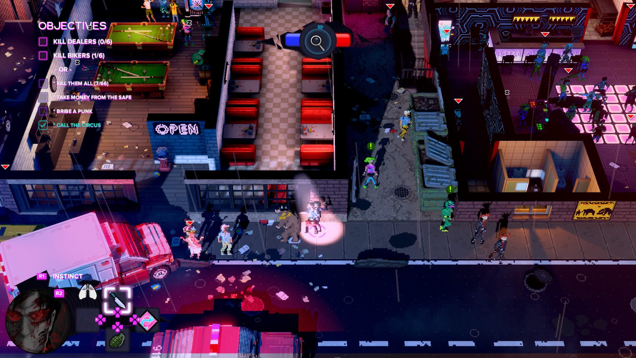 The excellent pixelated top-down view works perfectly. The game concept is awesome for anybody looking for something different. The party soundtrack is awesome and really fits the theme. Some parts became a bit repetitive and the game is quite unforgiving at the start. Once you get how the level works, you’ll find yourself doing the same thing over and over again with some small variance. I would’ve liked some more variation but all in all had a good time playing Party Hard 2
