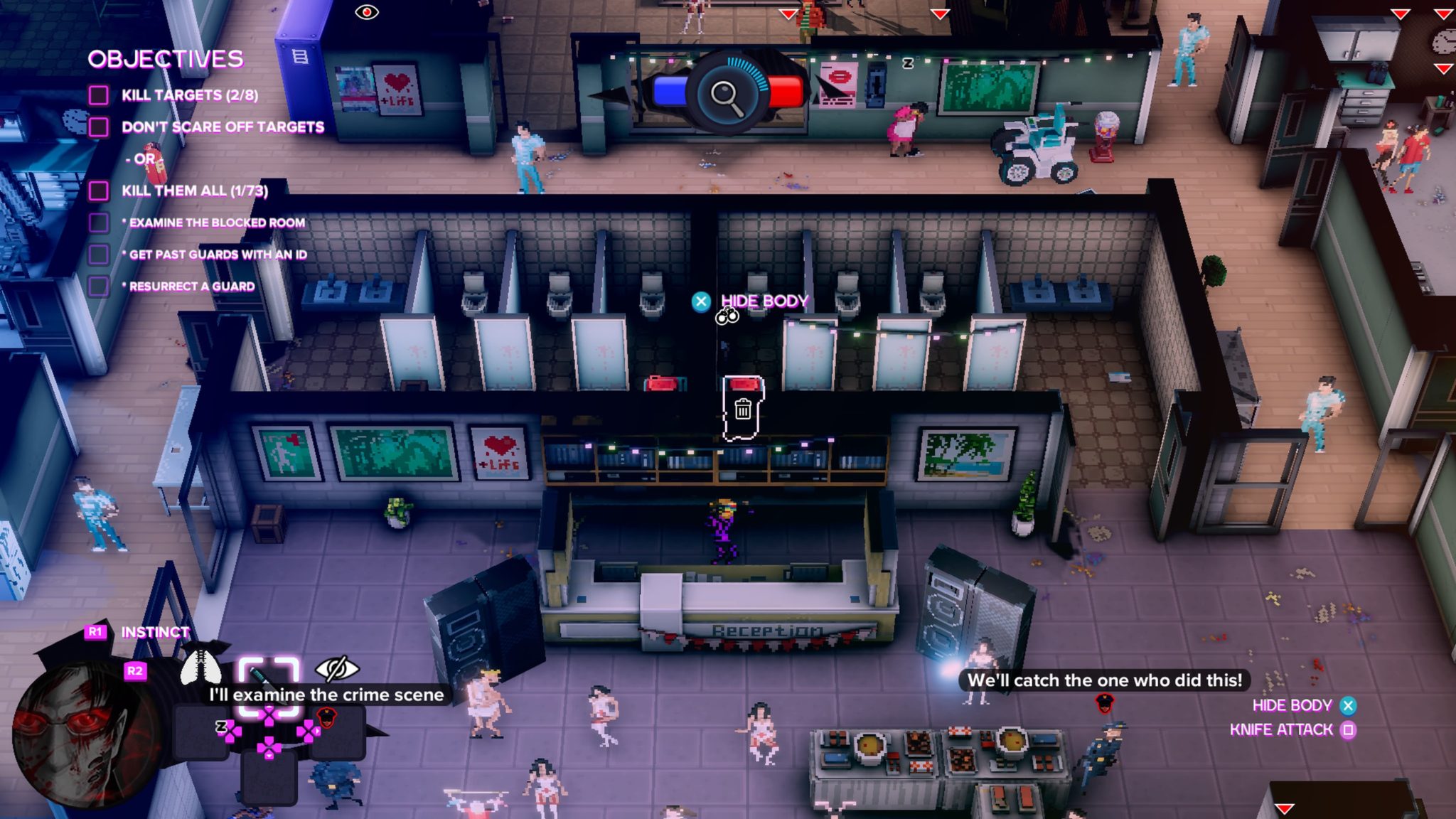Donning a hockey mask and going to a party doesn’t seem weird at all in Party Hard 2. Once you start knifing people, some start to put one and two together which means you might get in trouble with the police. Here’s where the stealth part of Party Hard 2 comes in play. Each level has you completing some specific kill objectives or alternatively just kill everyone. Stabbing your victims in plain sight is definitely not advisable. Looking for the perfect spot and the perfect timing will prove much more beneficial in going unnoticed and actually succeeding the level.