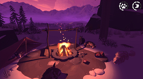 The goal of The Red Lantern is to survive in the Alaskan wilderness, choose the path to get to the log sled while trying to maintain your hunger and the dog’s energy meter. These will deplete as you journey along. Every time you engage in an event you will use up food/energy as well so make sure to choose the events you interact with wisely. There are trail markers along the way. Passing these with a depleted hunger/energy meter will end the run. Once ended it loops back to the beginning of the game with you having a nightmare about what could happen along the way. This new information helps your character be more prepared going forward, by starting future runs with more resources like food, bullets etc. Even special things like items you obtain will carry over. This progression is saved by the Musher checking and changing things in the notebook. This is a really nice way of going about the game progression. It builds on top of the story of you having no experience but still lets you learn along the way, instead of interfering or pulling away from the story. The notebook also works kind of like an achievement system. Here things like the animals and areas you encountered are logged as well.