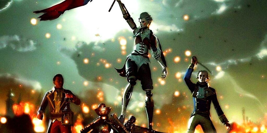 The game takes place during the French Revolution when King Louis XVI is reigning with his robotic army and is killing everyone who opposes him. The story starts off in the chambers of his Queen, Marie-Antoinette who’s keeping kept in her palace to keep her out of harm’s way. It’s been days without any known whereabouts of her King and her children and she needs to know what’s going on. Without the admission of her robotic bodyguards, she isn’t able to go out and search for the King herself and that’s where you come in, a highly technologically enhanced machine, serving as the Queen’s bodyguard and the only known Aegis (robotic machine) that’s loyal to her.
