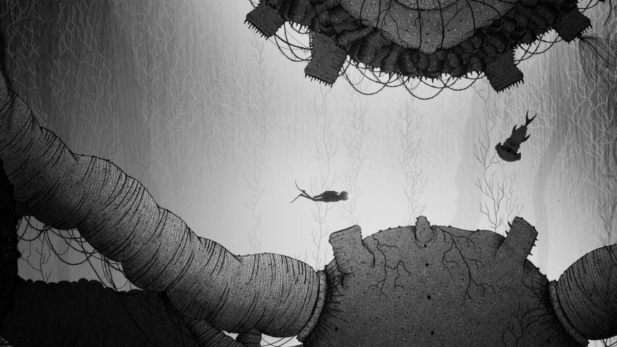 In Silt, you’ll control a mysterious diver who’s tasked to fix an ancient machine. There’s no explanation of what this machine is or why it needs fixing, you’re just there to do your job. In order to fix the broken machine, you’ll need to absorb the souls of the Goliaths, four humongous creatures roaming around in the gorgeous black and white waters. If you want their soul, you’ll need to defeat them, which will prove to be rather challenging. I love how the main story is never explained but leaves a lot of room for personal interpretation. Why are you there? Why do you need the souls of ancient creatures? What is the machine? A lot of questions will get answered if you pay close attention to your environment. It all starts in black and white waters but the more you advance, the more you’ll see. Later in the game, you’ll find a lot of underwater temples which explain a lot more of the story. In the end, it’s up to the gamer to come up with a logical explanation, in my case, I loved how Silt felt like an artsy even spiritual journey comparable to Limbo, Journey, and even Shadow of the Colossus.