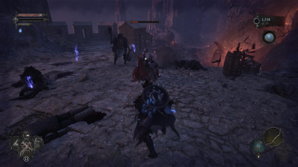 The game uses all the classic Soulslike tropes. People familiar with the genre will immediately feel at home in the dark setting of Lords of the Fallen. You’ll wander around Mournstead and recognize the classic spots enemies will be hiding in no time because you’ve played it already in the classics. Levelling up your character in this game is done at a “vestige”. Essentially a well-placed save point between hard areas. Sometimes these vestiges seem unreachable and as is always with these games, you’ll die a lot in trying to get to them. A vestige seed is introduced to grant you the ability to grow a temporary vestige in order to make the journey a bit more doable – or make the loss in progress a bit less painful.