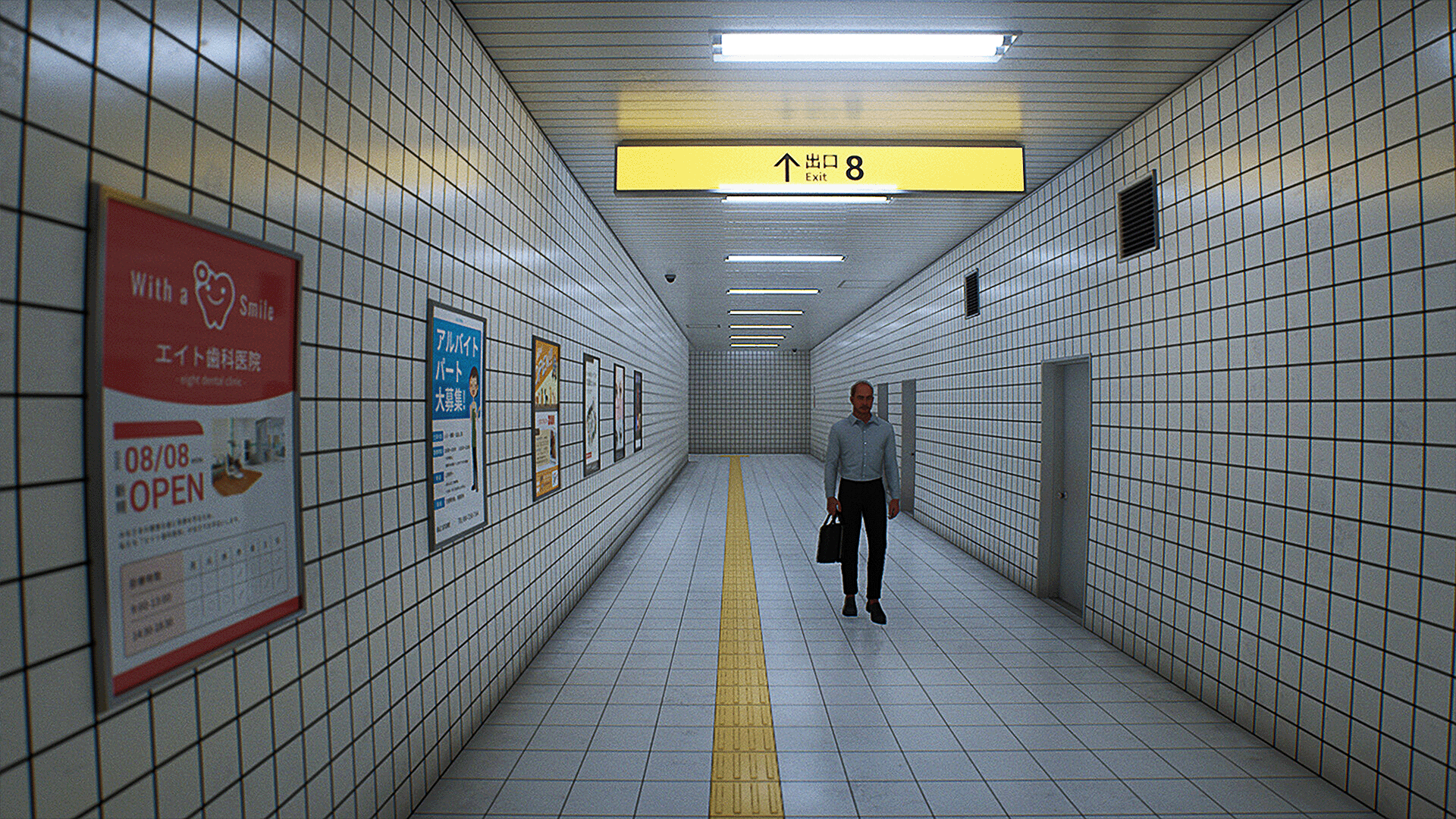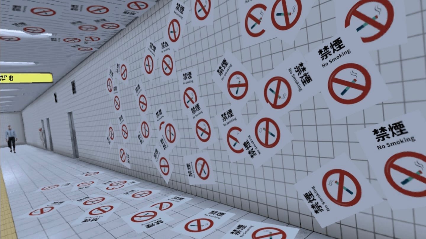 The Exit 8 VR is a typical walking simulator without complex gameplay. Its premise is as straightforward as they come, you need to walk around in the underground passageway and reach exit 8 in order to clear the game. If you don’t see something strange or different compared to your previous time in the underground tunnel, you’re free to continue walking. Have you spotted an anomaly? Turn around as fast as possible before something terrible happens! It’s as simple as they come and yet the horror level of the game kicks in from the start. Since the game is based on real underground passageways, it’s extremely realistic and clean. You’re walking around in a white tunnel with some bright light, a couple of posters on your left, and a couple of doors on your right. A random guy is walking in the opposite direction every time you enter that same tunnel. When you first start playing this in VR, an eerie feeling will instantly crawl over your skin. It’s all so clean and the sound design really shines in VR. The game is accessible on non-VR platforms but in my opinion, this is the way to play it. The Meta Quest 3 immediately sucks you into the passageway and walking around in it works best in VR, especially in combination with the sound design. That being said, it’s still a walking simulator here you move around with the left stick and turn the camera with the right stick. Camera movements are rather snappy and if you’re not used to VR gaming you might feel sick playing this game. Spending some time to get used to the snappy camera helps but it won’t be enjoyable for everyone. Personally, I didn’t suffer any motion sickness and enjoyed my stay in the game.