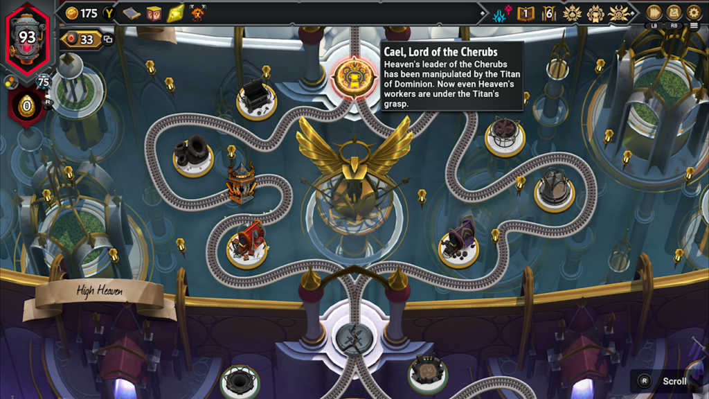 Monster Train 2 builds confidently on the structure of the original game. Where the first had players defending Hell from celestial forces, this time you’re rising out of Hell, through Heaven and the Abyss, to stop the rampaging Titans. The story sees demons and angels uniting, with you commanding dual clans aboard a vertical battlefield: your train. Enemies attack from the bottom up, climbing three deployable floors before reaching the top level where your vulnerable Pyre resides. Let them damage your Pyre enough, and your run ends in flames.