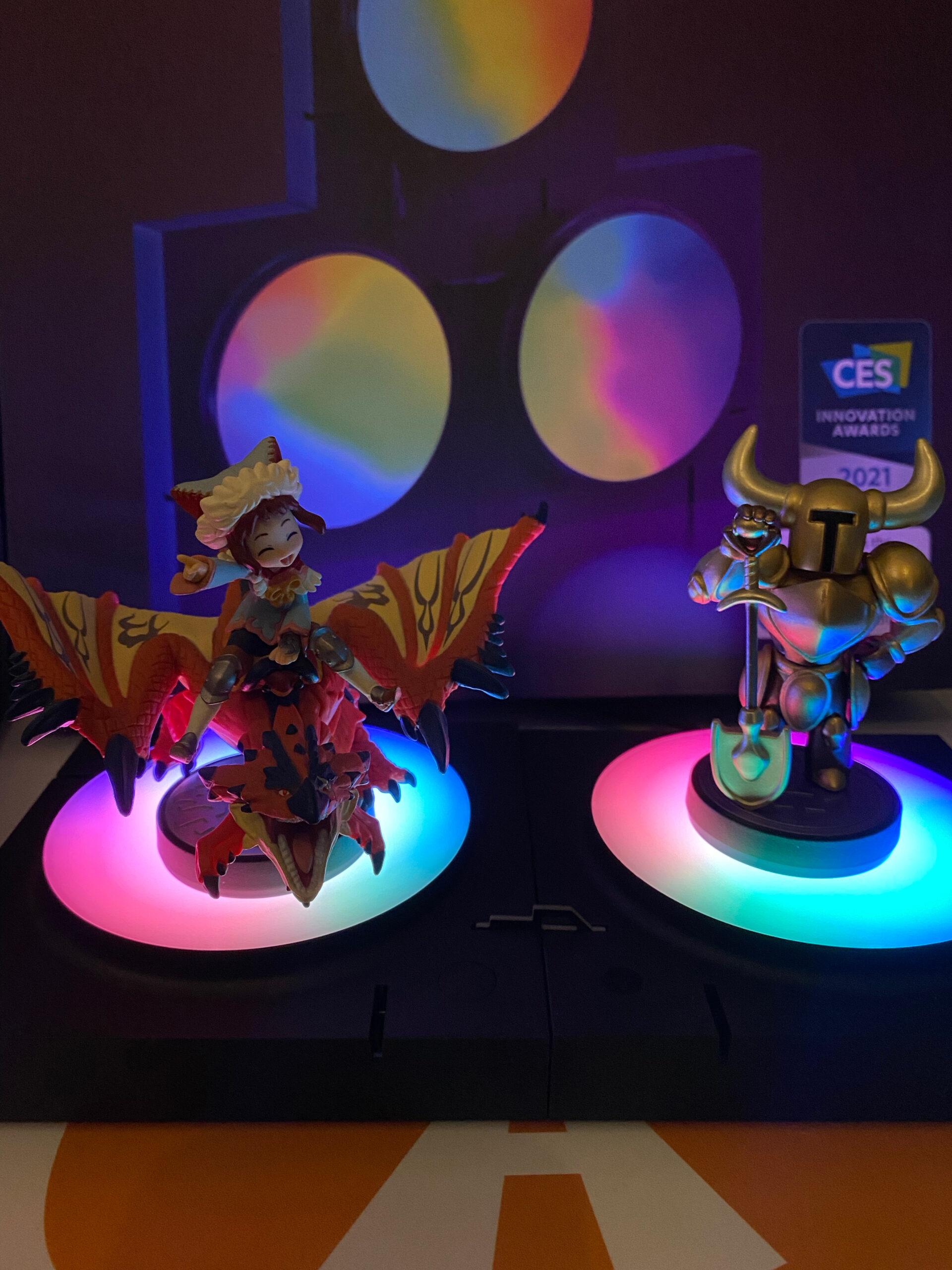 The Cololight Mix comes packed with a couple of pre-programmed settings, which can easily be activated and navigated through using the button on the base of the panel. With a push of the button, you go through the options and jump from one preset to another. All the preset lights really shine bright and I love the way the colors flow into each other, giving you that true ambient RGB feeling. Although they are created to hang in the background of your setup, I actually love them in combination with some of my figurines (amiibo in particular).